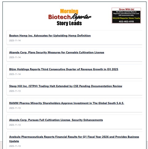 North America’s 426 Biotech Reporters have begun receiving their daily email dose of Biotech morning Summary.
